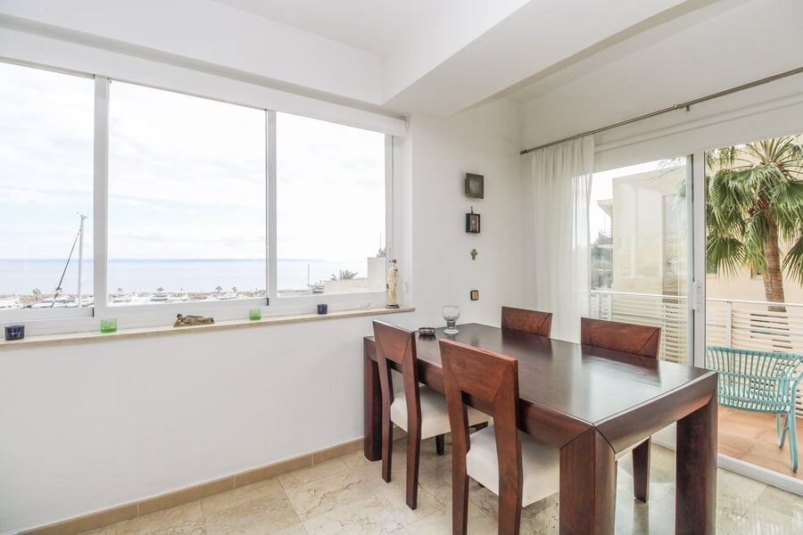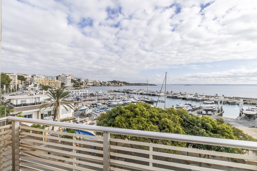 Situado a pocos pasos del popular puerto deportivo de Cala Nova, este luminoso apartamento ofrece 97 m² en total y 84 m² de superficie habitable, con fantásticas vistas al mar desde cada ventana. Gracias a su orientación sur–suroeste, la vivienda disfruta de sol durante gran parte del día y de atardeceres mágicos. El apartamento consta de 2 dormitorios con armarios empotrados, 2 baños con bañera y una cocina abierta integrada en el salón que da acceso a una hermosa terraza de 13 m² con vistas abiertas al mar y al puerto. Un lugar ideal para relajarse y cenar. El edificio, construido en 1983, ofrece ascensor y trastero. El apartamento dispone de aire acondicionado en el salón. La vivienda necesita reforma, lo que ofrece al nuevo propietario una fantástica oportunidad para crear un hogar moderno, personal y exclusivo en una de las zonas costeras más solicitadas de Palma. Una inversión perfecta para quienes buscan vistas al mar, una ubicación soleada y la oportunidad de crear la casa de sus sueños.