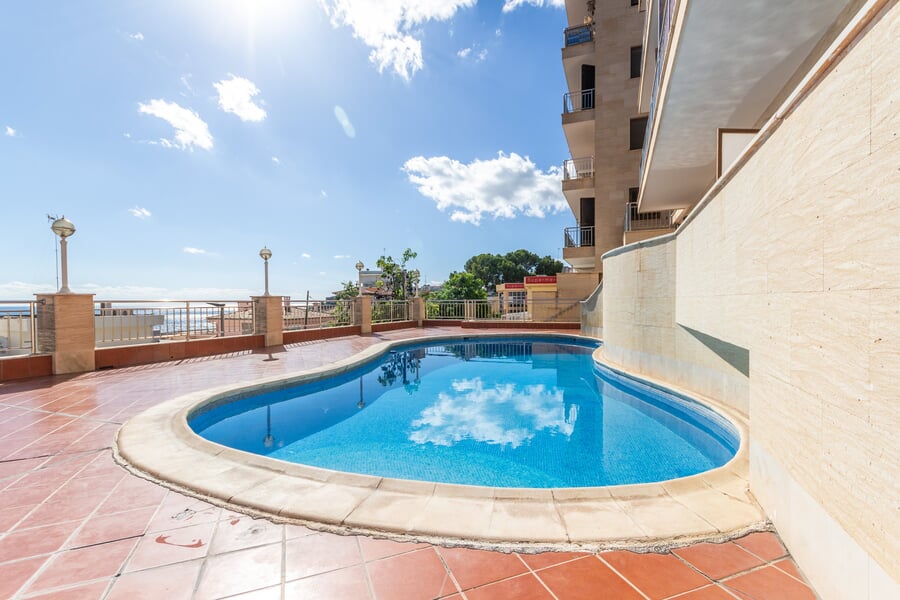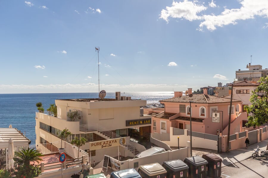 Este apartamento recientemente renovado de aproximadamente 50 m² ofrece un ambiente luminoso y moderno con un marcado estilo escandinavo. Situado en el corazón de San Agustín, disfrutarás de una ubicación privilegiada, justo frente al mar y con acceso directo a la piscina comunitaria. La vivienda cuenta con un diseño abierto y social con una cocina moderna y elegante conectada al salón. Grandes ventanales llenan el espacio de luz natural y se abren a un acogedor balcón, perfecto para disfrutar del café de la mañana o una copa al atardecer con la brisa marina. El apartamento dispone de dos dormitorios – uno doble y uno individual – así como dos modernos baños, uno de ellos en suite al dormitorio principal. Un hogar listo para entrar a vivir – se vende completamente amueblado y llave en mano, listo para ser disfrutado desde el primer día. Una opción ideal para quienes buscan un apartamento fresco y cómodo cerca del mar, de los restaurantes y de todos los servicios en la codiciada zona de San Agustín. Se vende en EXCLUSIVA vía BUY A HOME MALLORCA.