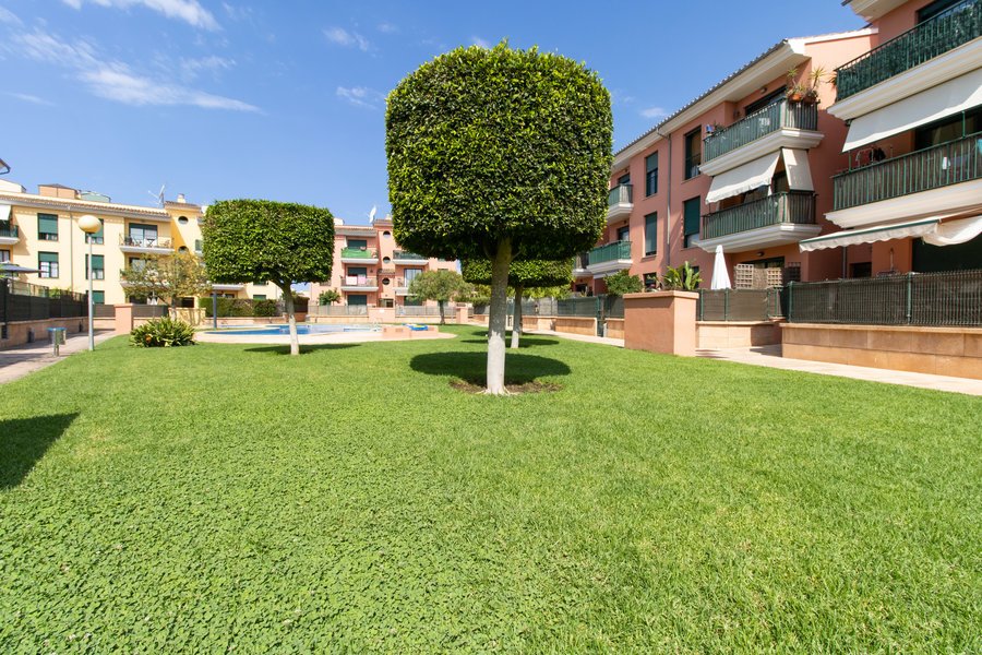 Esta bonita planta baja con terrazas se ubica en Sa Torre ,una zona residencial boscosa al lado del mar entre Playa de Palma y Cap blanc.La vivienda forma parte de una elegante comunidad con agradable zona ajardinada y piscina comunitaria.Mide unos 90 metros cuadrados con una terraza de 45 metros cuadrados y otra de 20.Consta de un salón comedor, cocina y coladuria,tres habitaciones dobles con armario empotradas y dos baños con bañera , uno en suite .Se vende con plaza de parking. La vivienda es luminosa y ofrece disfrutar de un agradable espacio exterior para relajarse.El entorno es tranquilo y residencial, a solo unos diez minutos en coche de la zona animada de El Arenal y su larga playa El campo de golf Maioris es cerca y Palma a tan solo 20 minutos en coche .