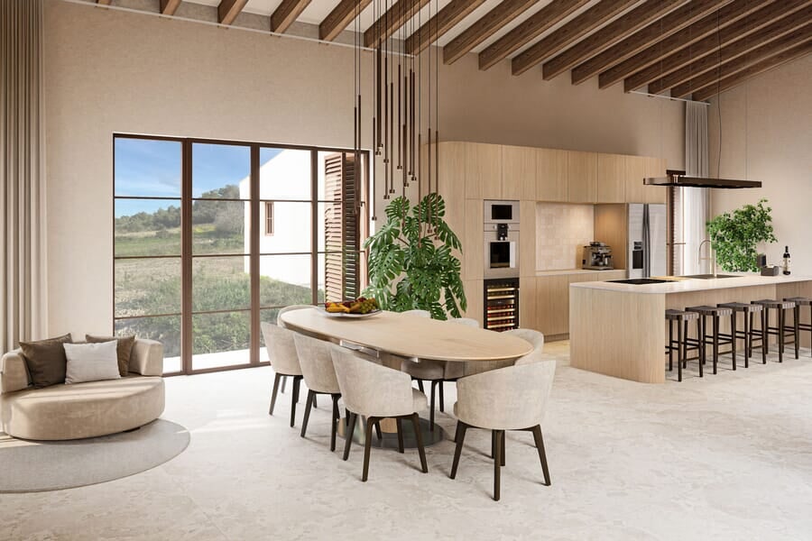 La propiedad se encuentra en el alma auténtica del interior de la isla, en las afueras del municipio de Sant Joan. El centro del pueblo se alcanza en cinco minutos, y María de Salut y Petra en siete minutos. Las playas de Playa de Muro y Son Serra de Marina se encuentran a 25 minutos. Palma de Mallorca y el aeropuerto están a 45 minutos. Un tranquilo refugio rural con toda la isla al alcance.