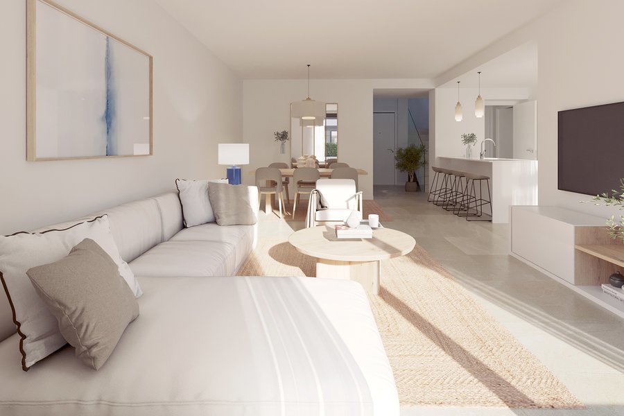 Esta moderna casa adosada está orientada al suroeste y ofrece sol durante todo el día y por la tarde se puede disfrutar de las maravillosas puestas de sol de Mallorca. La casa está construida en dos plantas y tiene una terraza adicional en la azotea de aproximadamente 44 metros cuadrados. En la planta baja se encuentra la cocina, el salón, una habitación adicional que se puede utilizar de diferentes maneras dependiendo de sus necesidades y un aseo de invitados y lavadero. Maremma ofrece tres distribuciones diferentes en la planta baja: 1. Despacho y cocina independiente. 2. Despacho y cocina abierta al salón. 3. Planta abierta con cocina y salón-comedor en una sola habitación. En la planta superior hay tres dormitorios más y dos baños completos. Las habitaciones son luminosas y cálidas y los grandes ventanales abren la casa al exterior y aportan mucha luminosidad y crean un ambiente único. La parcela de la casa es independiente y cuenta con dos plazas de aparcamiento y un gran jardín privado con piscina propia. Gracias a la certificación de casa pasiva, experimentará una nueva forma de vivir. Está equipada con Aerotermia, una tecnología limpia que extrae la energía del aire y la transfiere al agua mediante una bomba de calor para crear la temperatura necesaria para la calefacción. Pídanos información detallada y reserve hoy mismo su nueva propiedad en Mallorca.