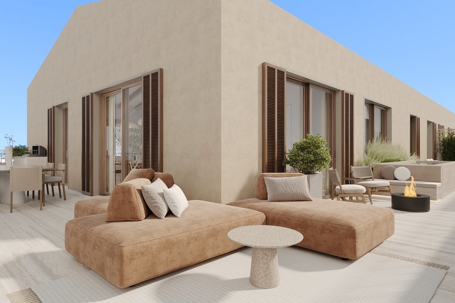 Esta villa boutique forma parte de uno de los nuevos desarrollos más emocionantes del centro de Palma, Santa Catalina. A sólo unos minutos del carismático barrio de Es Jonquet y del idílico paseo de palmeras que pronto estará terminado a lo largo del Paseo Marítimo. La casa con cinco dormitorios y una grandiosa zona exterior de aprox. 280 metros cuadrados y piscina privada en la azotea será su oasis urbano en el centro de Palma. Puede elegir entre dos diseños de interior diferentes y de alta calidad, aquí el ejemplo EL MONTE, una combinación de maderas oscuras, paredes con textura y una paleta de colores claros, así como una cocina de acero inoxidable aportan un toque de chic industrial. El concepto general es sofisticado y moderno, en consonancia con la arquitectura del nuevo edificio. Los aproximadamente 430 metros cuadrados de espacio interior total se distribuyen en cuatro plantas, incluido un aparcamiento con plataforma giratoria para dos vehículos. En la planta baja también hay un jardín privado con una piscina de 3,00 x 9,75 x 1,50 m y una segunda piscina en la azotea de aprox. de 61 metros cuadrados con impresionantes vistas del puerto deportivo de la ciudad. Esta exclusiva villa está diseñada pensando en el confort y la modernidad atemporal, teniendo en cuenta su realización individual. Las habitaciones están equipadas con electrodomésticos de alta calidad y tecnologías innovadoras. Nos gustaría invitarle a una conversación personal con nosotros para que podamos explicarle los detalles de esta joya.